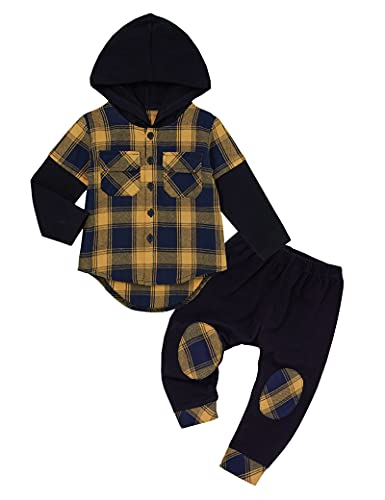 DONWEN Toddler Baby Boy Clothes Plaid Long Sleeve Patchwork Hoodie Top + Pants 2pcs Fall Winter Outfits Set