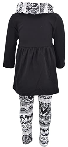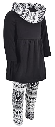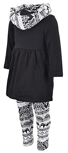 Unique Baby Girls Kids Toddler 3pc Outfit Set Long Sleeve Cotton Blend Tunic Top Leggings and Scarf